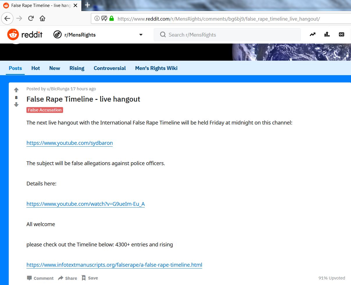 I also posted a YouTube notification for the next live hangout with the False Rape Timeline. As things stand this will be held Friday, ie January 11, at 10pm London time.