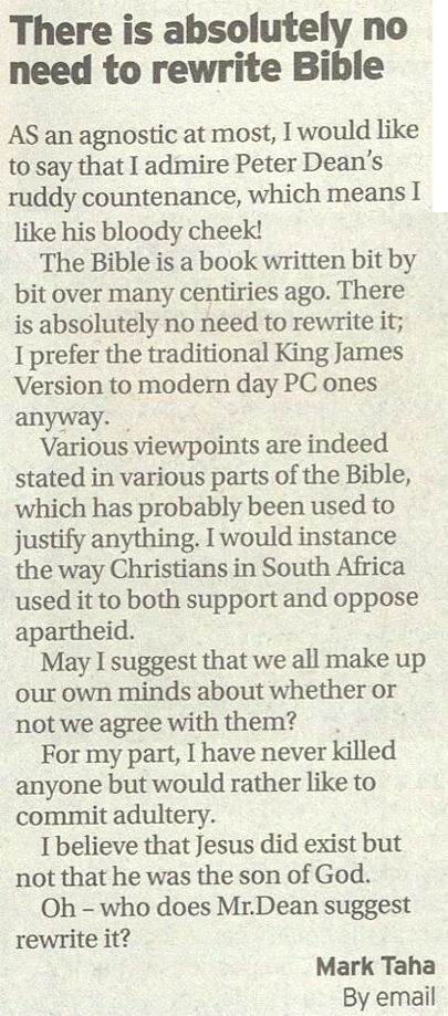 The above is a letter by Alan Jensen; see the next entry for the response of the Great Man.