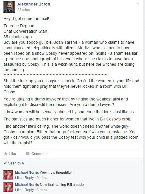 Fan mail (a comment) re my article on The Cosby Conspiracy added direct to the Baron/ITMA Bibliography, December 24, 2015
